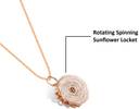 Rose-Gold Color Premium Quality Valentine's Day Special Stainless Steel I Love You Romantic Beautiful Ad Nug Studed Sunflower Spinning Rotating Locket Pendant Necklace With Chain For Girl's And Women's