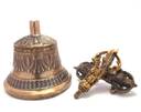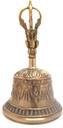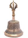 The Nepali bell with dorje and stick, commonly known as a singing bell, is a traditional musical instrument originating from Nepal and the Himalayan region. Crafted from a blend of metals like copper, tin, zinc, and iron, it features a wide, shallow bowl-like shape with a rounded bottom and decorative engravings, often holding spiritual or cultural significance. Accompanying the bell is the dorje, a small metal scepter with a cross shape symbolizing strength and enlightenment. The stick or mallet, usually made of wood with a soft material on one end, is used to produce sound by gently rubbing or striking the bell's rim. The singing bell is widely used in spiritual and meditation practices for its calming and therapeutic tones, inducing relaxation and aiding in healing. It holds deep cultural significance and plays a crucial role in various ceremonies in Nepal and the Himalayan region, making it a cherished object that embodies art, culture, and spirituality.