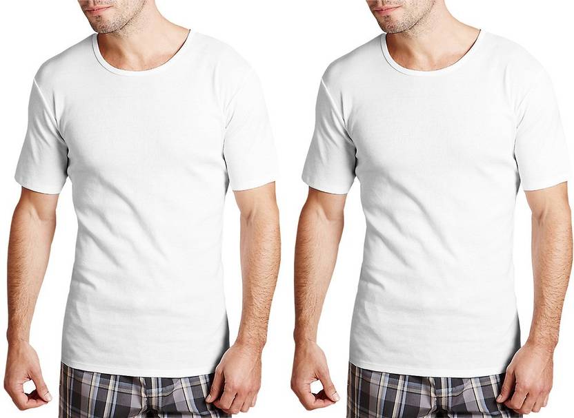 Mens 100% Cotton White Sleeveless Vest Innerwear Combo of 2 Pack