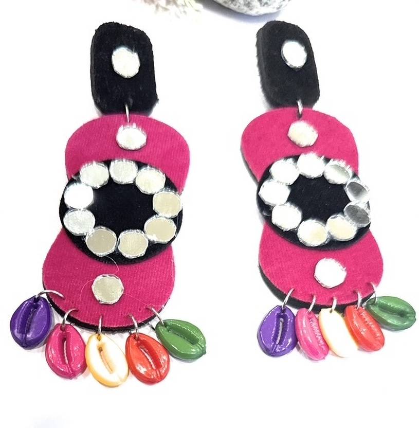 UWISH UW 205 PNK BLK EARRING Fabric Clip-on Earring