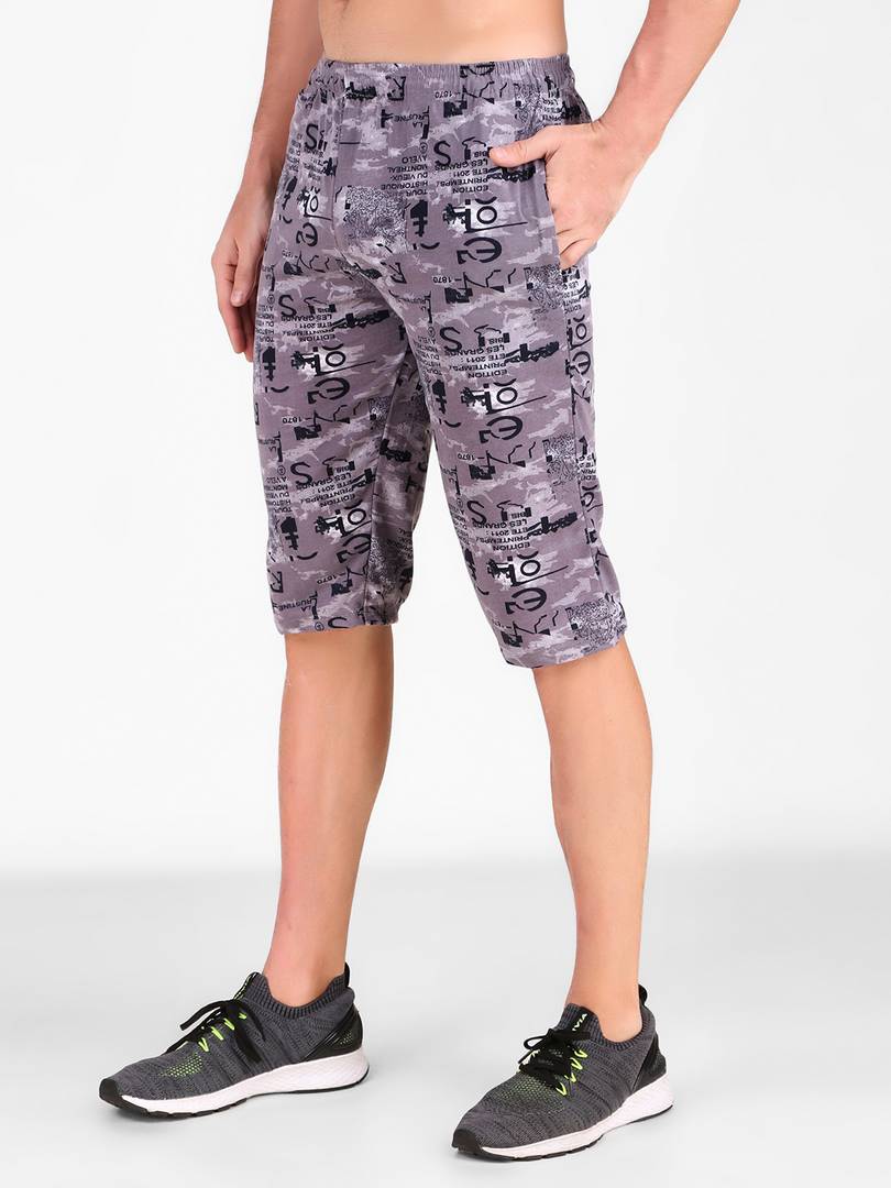 Men's Cotton Three Fourth Capri Shorts With Two Zippered Pockets