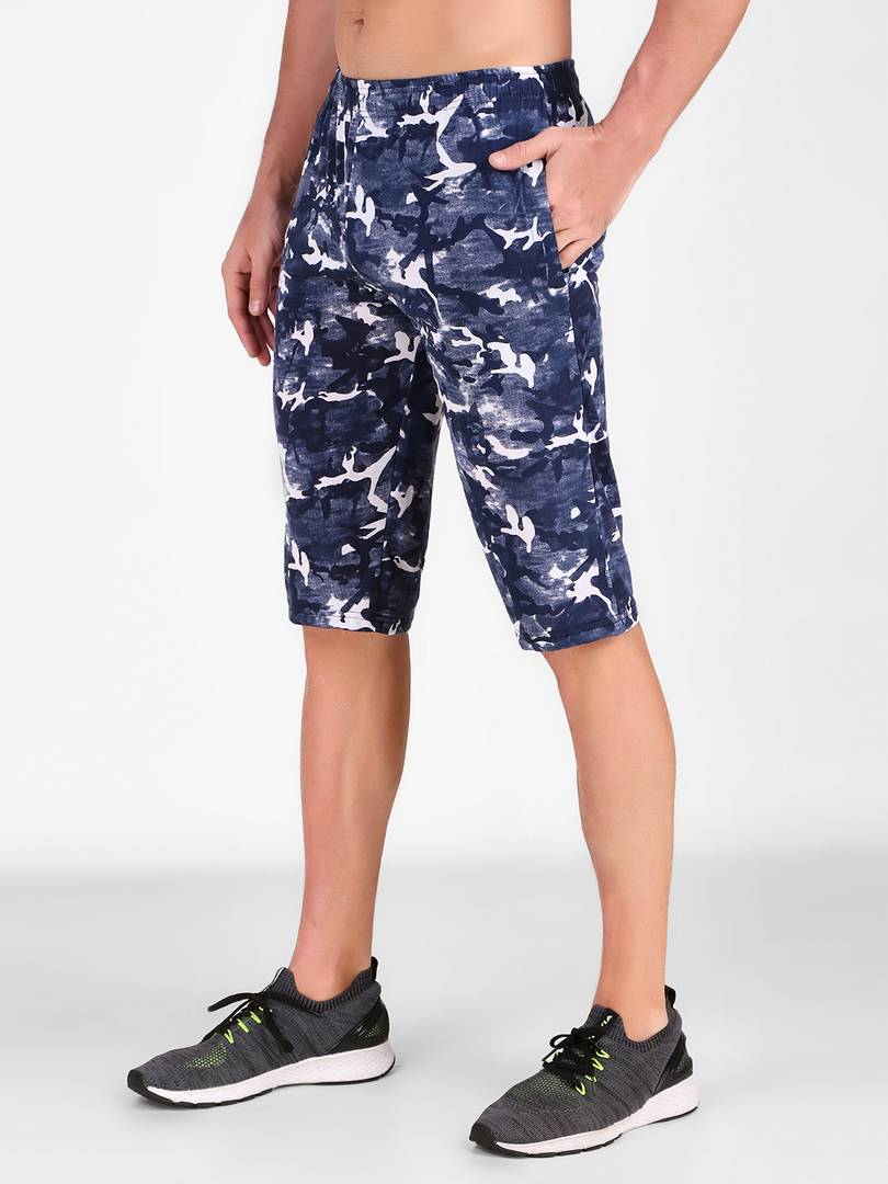 Men's Cotton Three Fourth Capri Shorts With Two Zippered Pockets