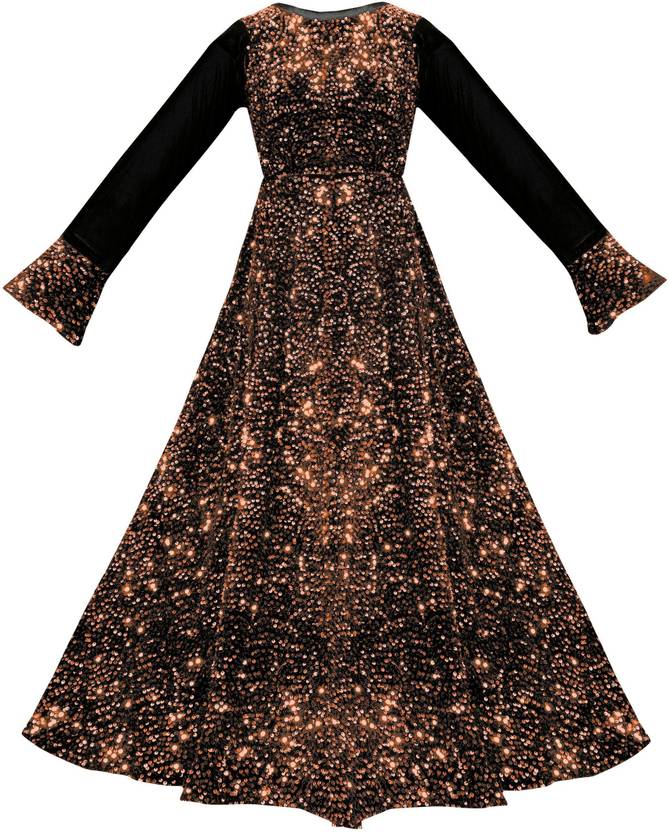 Maxi/Full Length Festive/Wedding Dress (Gold, Full Sleeve)
