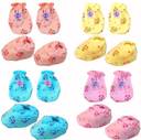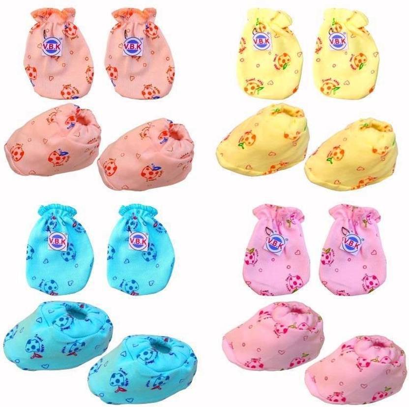 V.B.K products comes with combo pack of mittens and booties for your little baby. These are made of Hosiery Material. These mittens are the used to keep your little baby hands and Lags covered to avoid scratching.The delightful colours on white base and attractive prints give your baby's appearance an adorable charm. The prints on socks and mitten have good colour fastness and thus they resist fading. These Mittens Bootie set from V.B.K Are Used To Keep Your Little Baby Hands Covered To Avoid Scratching While Booties Set Will Protect Their Little Feet. Easy To Clean And Durable To Withstand Many Wash Cycles, Comfortable To Wear All Day Long. Soft Washable Multicolor Printed & Solid Set. Package Contents : 4 Pair Of Hand Mittens and 4 Pair Of Leg Booties