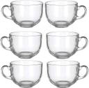V Bright Pack of 6 Glass Oval Shape Round Classic Glass Cup Set for Tea, Coffee, Beer, Hot/Cold Drinks (Clear, Cup Set)