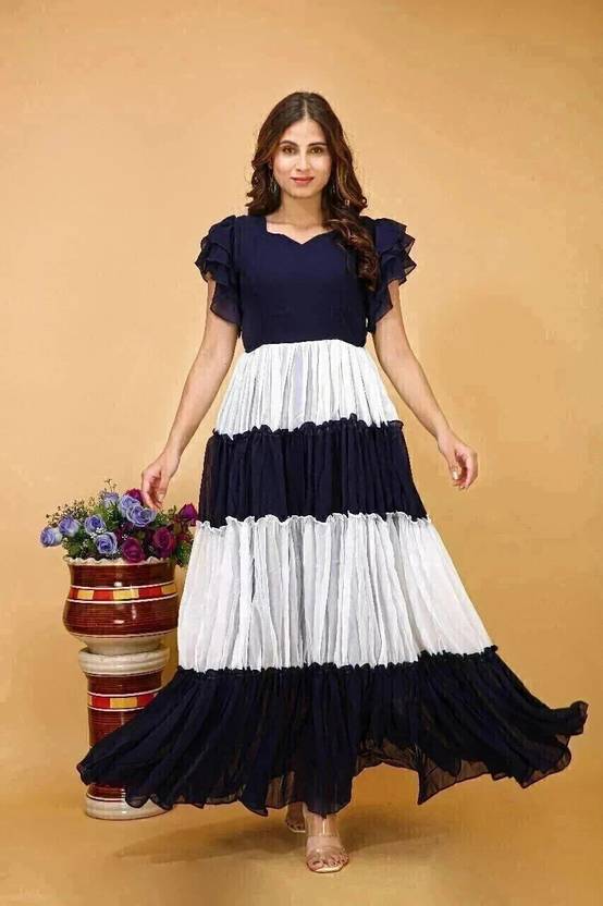Step into elegance with our stylish anarkali gown, an ideal choice for special occasions and festivals. Crafted from lightweight Organza material, this ensemble features a round neck, long sleeves, and a charming floral digital print. The georgette kurta dupatta set boasts a double layer, adorned with a golden border, lending it a touch of sophistication. The gown set is beautifully adorned with a golden and white threadwork design, adding an extra layer of intricacy to the overall look. Versatile and graceful, it's the perfect attire for traditional events, festivities, or parties.
