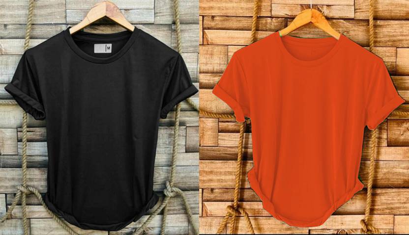 V DAS Pack of 2 Men Solid Round Neck Polyester Multicolor T-Shirt