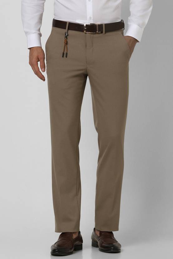 Men Slim Fit Khaki Polyester Trousers