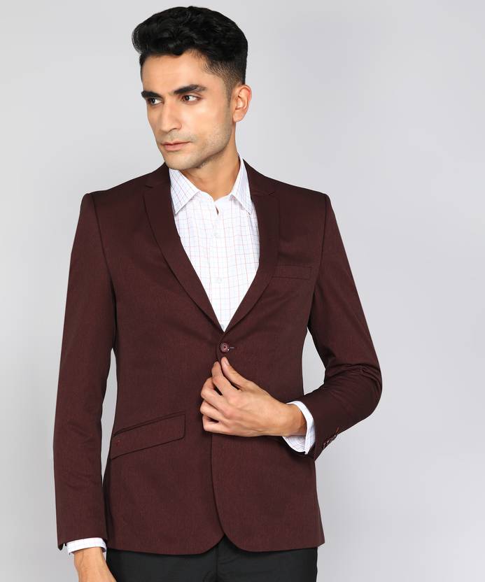 V DOT BY VAN HEUSEN Solid Single Breasted Formal Men Blazer (Red)
