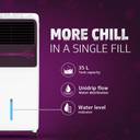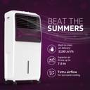 Thanks to its unidrip flow water distribution, this 35 L air cooler saves water. Also, the convenient water level indicator on this cooler lets you decide when you want to add water.