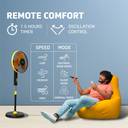 Offering a remote control and an inbuilt timer, the V-Guard Esfera Remote-operated Pedestal Fan ensures the utmost comfort for you and your family. Thanks to its three-speed control, including normal, natural, and sleep, this pedestal fan lets you easily change the airflow as per your requirements. With its synchronous jerk-free oscillation, this pedestal fan offers uninterrupted airflow. Moreover, owing to its inbuilt overload and overheat protection, this pedestal fan is safeguarded against burnouts. Additionally, its height-adjustable stand enables you to set this pedestal fan’s height according to your needs.