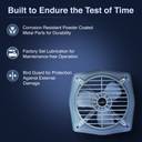 Built using strong metal, this exhaust fan’s blades deliver effective performance and ensure durability. Also, the powder-coated metallic finish makes it long-lasting.