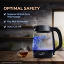 With the V-Guard VKG17 Electric Kettle in your kitchen, anyone can boil water for green tea, black coffee, or for anything else instantly. This kettle features Borosilicate Glass with British Strix Technology, LED Lighting, and a One-Touch Lid Lock for efficient, safe, and durable performance.