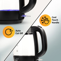 This kettle comes with a cool-touch handle for a safe grip, an auto shut-off feature that automatically turns off the kettle when water boils, and concealed heating element for the safety of the user.