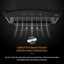 This V-Guard chimney boasts a suction capacity of 1200 cubic meters per hour, which makes it ideal for Indian kitchens, Moreover, this chimney can draw-in fumes and smoke from a kitchen with a size of up to 59.9 cubic meters (2118).