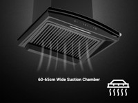 This chimney comes with an aerodynamic body and a wide suction chamber, which allows it to cover a burner stove of of 60-65 cm length so that you can get a clean and healthy cooking area.