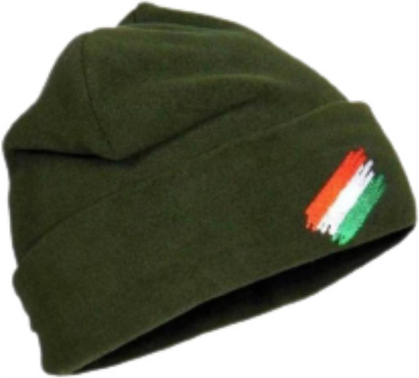 Army Trendy Woolen Cap/Topa for Men Unisex Woolen Military Caps with Tricolor Print for Winter Season (Olive Green, Free Size )