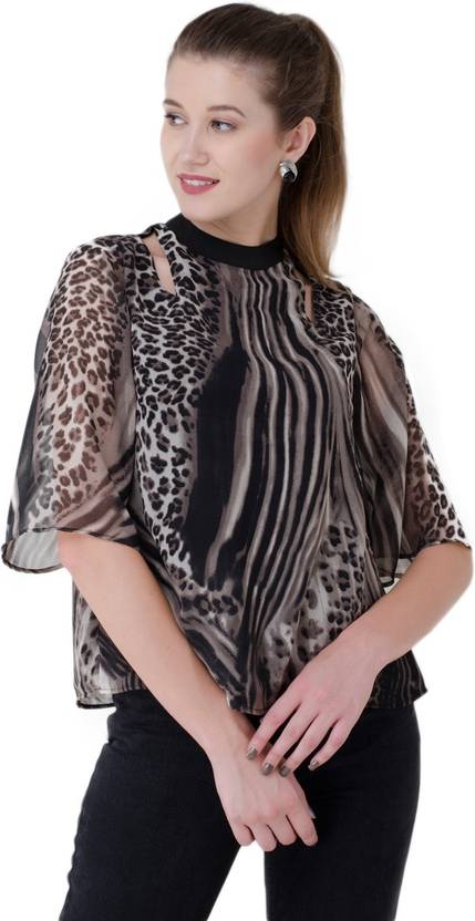 V&M Party Kimono Sleeve Animal Print Women Black Top