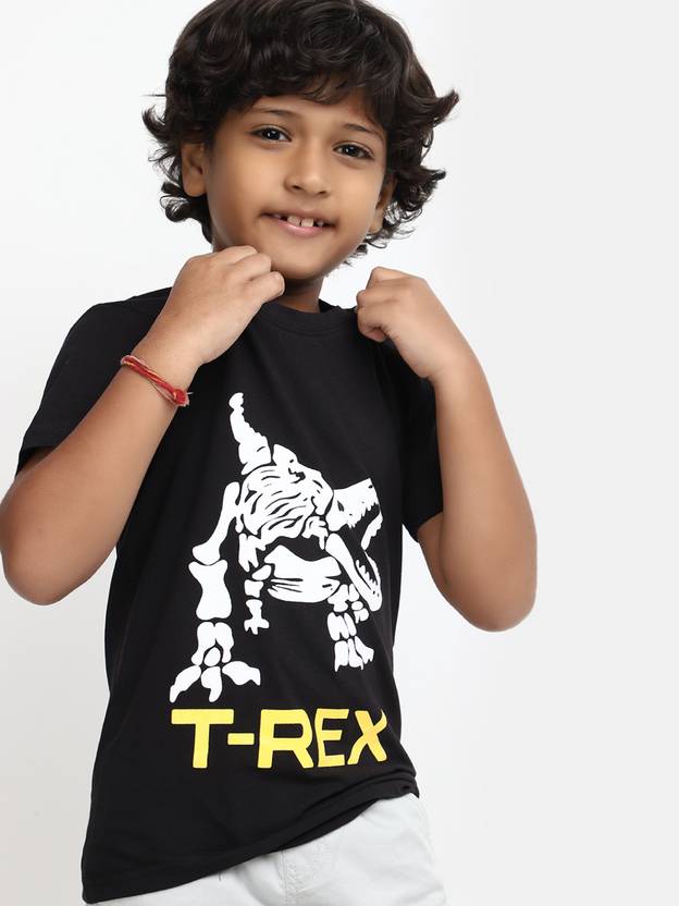Boys Typography, Printed Cotton Blend Regular T Shirt (Black, Pack of 1)