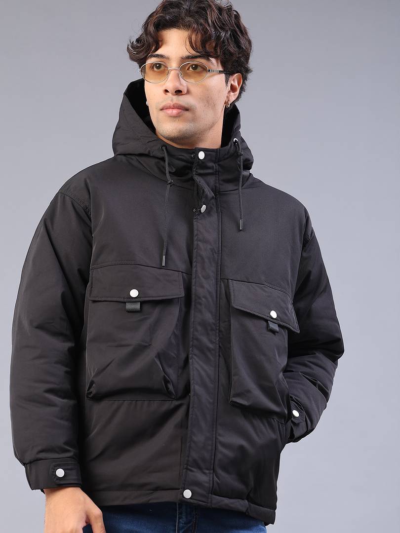 V-Mart Men Solid Polyester Hooded Neck Heavy Jacket