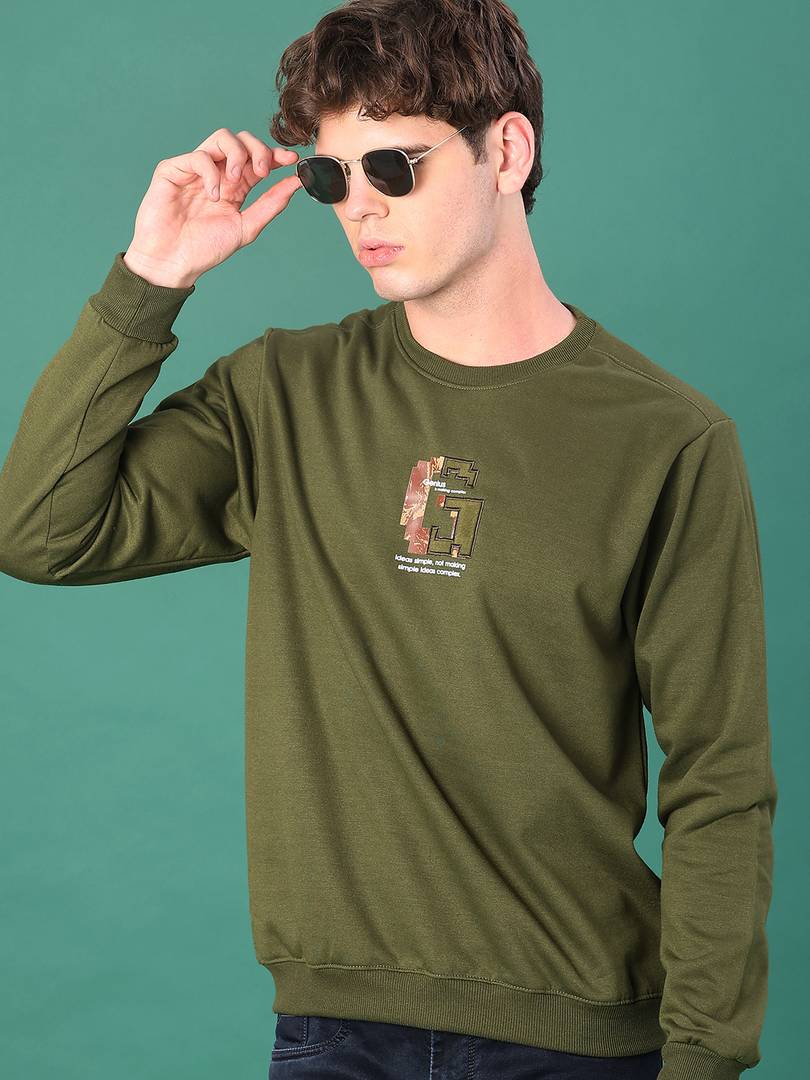 V-Mart Men Printed Spun Fleece Round Neck Sweatshirt-