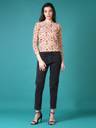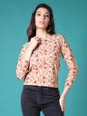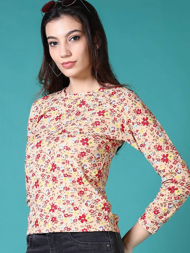V-MART Printed Women Crew Neck Beige T-Shirt