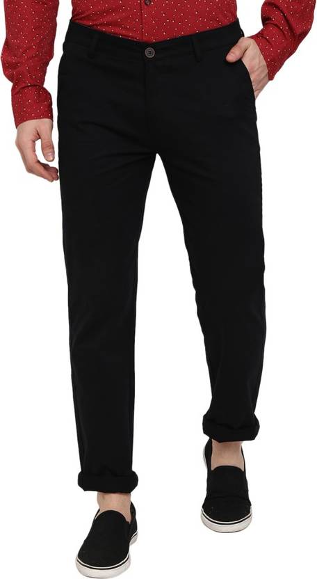 Men Regular Fit Black Pure Cotton Trousers