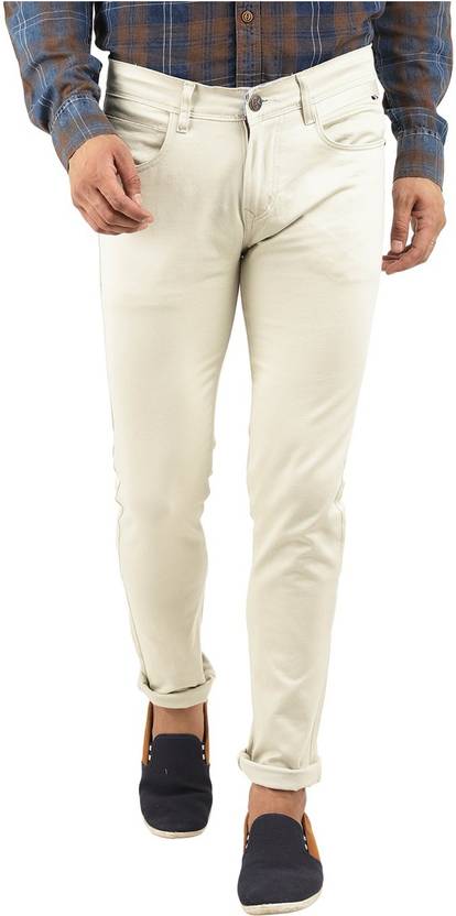 Men Regular Fit White Polycotton Trousers