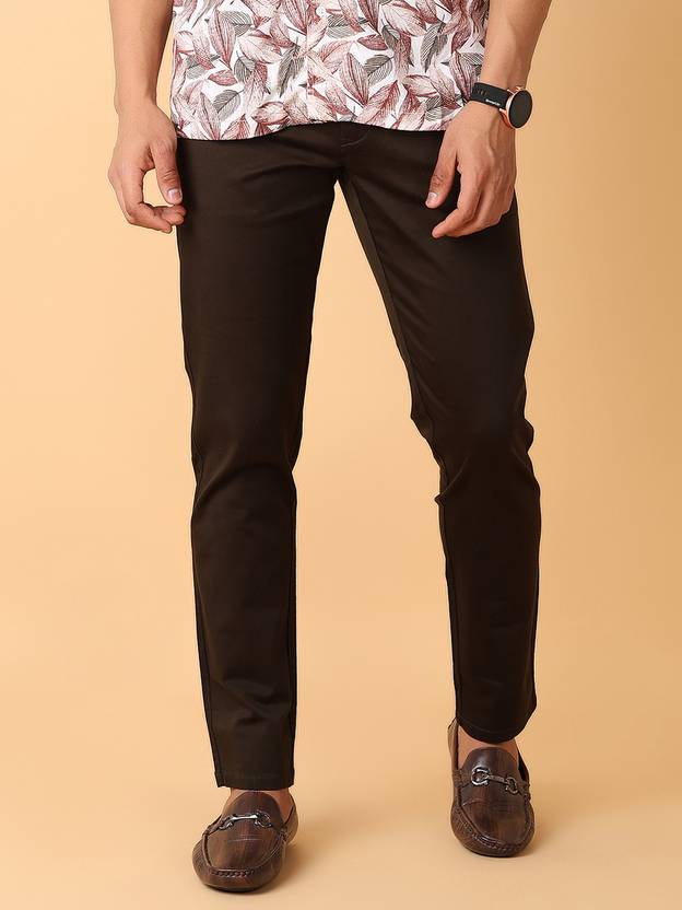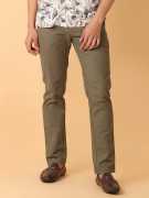 Men Slim Fit Dark Green Cotton Blend Trousers