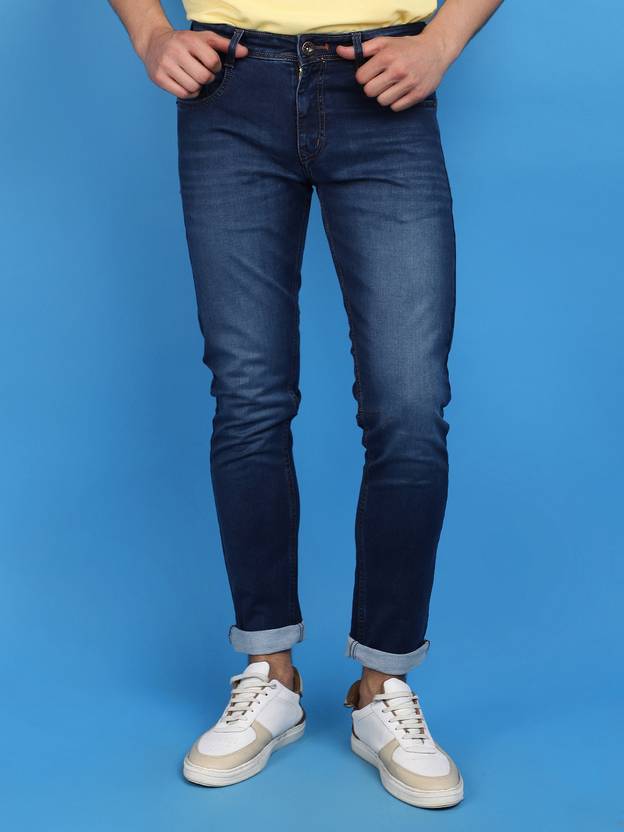 Men Slim Mid Rise Dark Blue Jeans