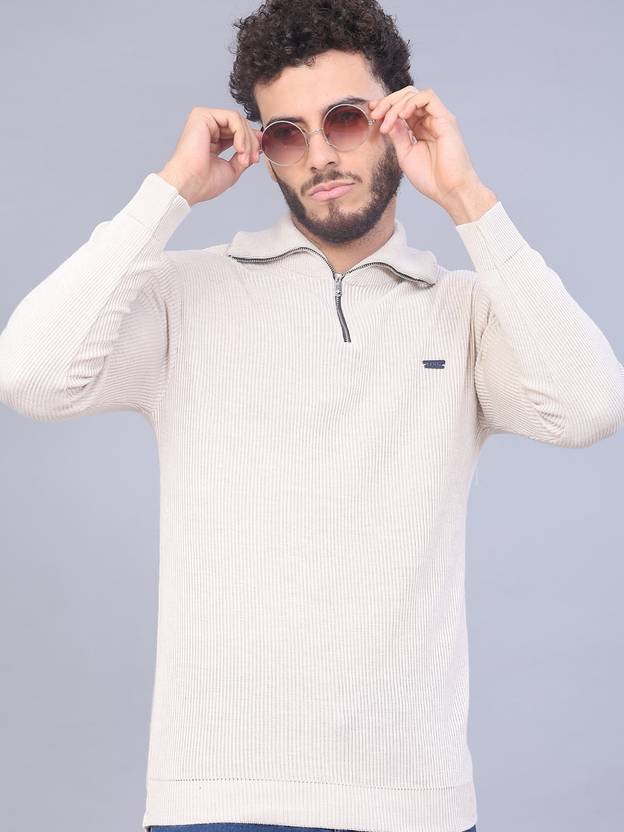 V-MART Solid Collared Neck Casual Men Grey Sweater