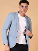 V-MART Solid Single Breasted Casual Men Blazer (Blue)