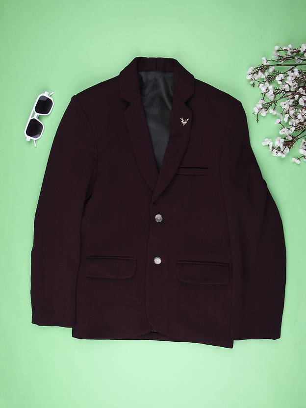 V-MART Solid Single Breasted Party Boys Blazer (Maroon)