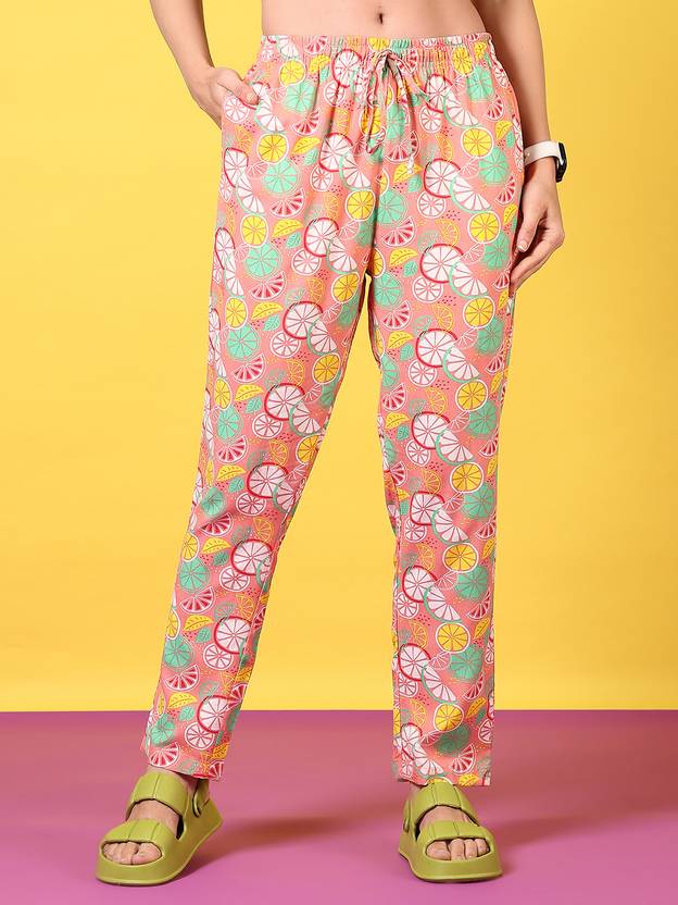 V-Mart Women Western Printed Rayon Mid-Rise Pyjama