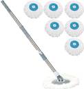 V-MOP Premium Classic Grey Rod Mop Stick- India's Best Rod Set With 6 Microfiber Refills -Easy to fit for All Bucket Mops - (( 6 Months Warranty on Rod Set )) String Mop (Multicolor)
