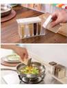 volume is each one about 4 ounces Set of 6, convenient to storage different condiment, one box for one taste to prevent mix of seasonings Small holes for powder-like condiment, large holes for large particles of seasoning. It’s very easy to use and with good sealing Transparent box body, You can differentiate the condiment and pick up easily. It is made by PP + PS material, healthy and environmentally friendly, the smooth surface,Removable lid for easy cleaning The seasoning boxes can be used together with the base, also can be used alone, suitable for different place.
