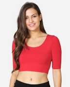 Made from fine knit blended fabric provides superior comfort.Elbow length sleeve with relaxed scoop front neck & keyhole back.