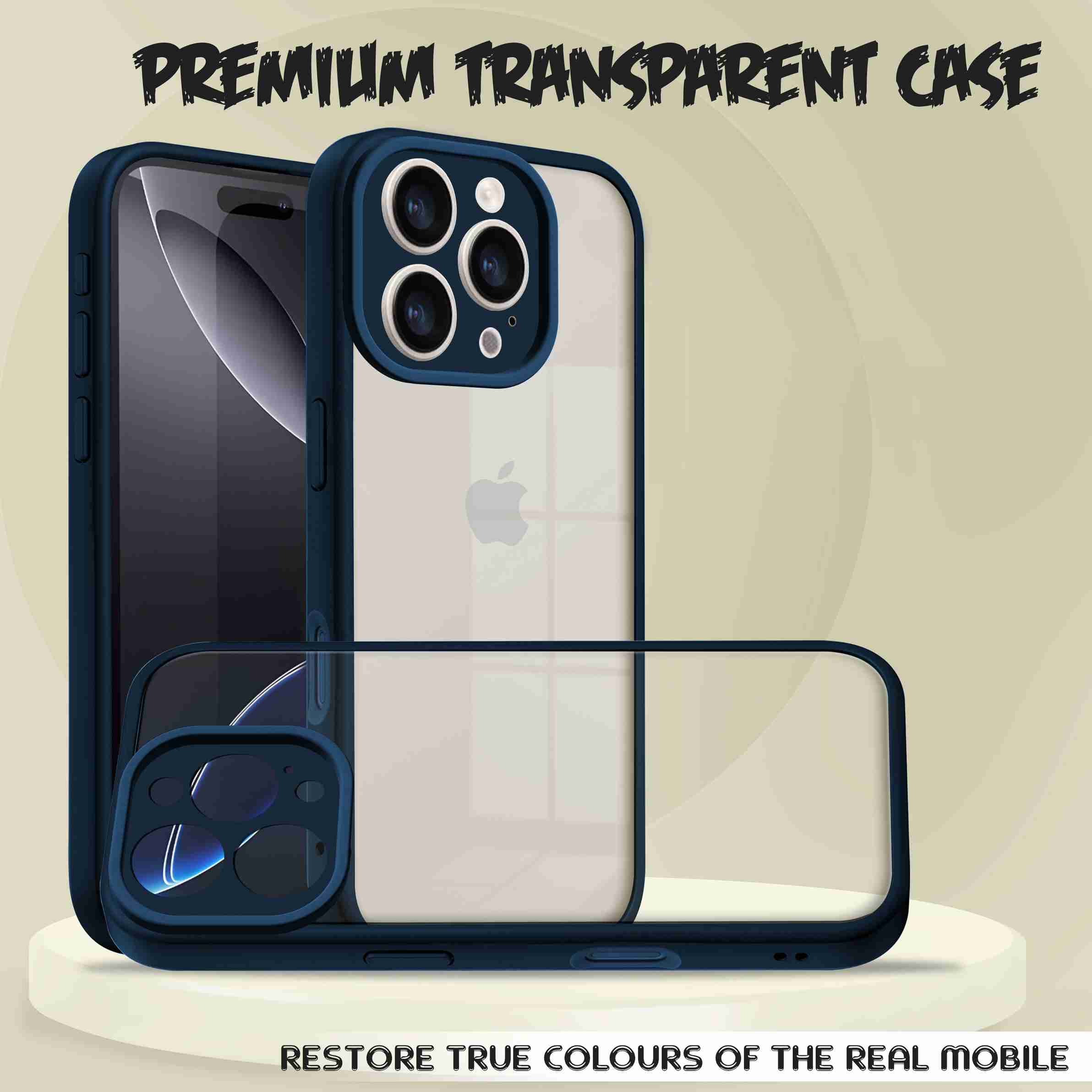 Back Cover for iPhone 16 Pro Max (Blue, Transparent, Shock Proof, Pack of: 1)