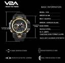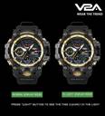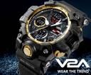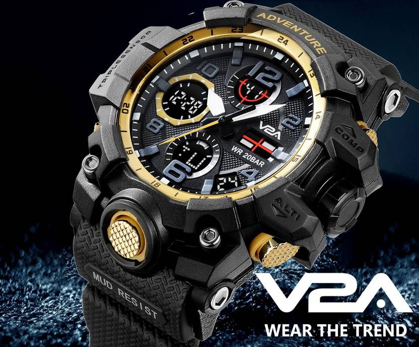 V2A - Is known to deliver high quality design and performance watches to enhance your style quotient and to be your best companion for all types of sports and outdoors activities. V2A brings to you this analog and digital watch which is designed for the men with adventurous spirit and a knack for stylish timepieces. Splendid and luxurious wrist watch fashioned from V2A is light in weight and long lasting too. You can show it off with your casual, sports & formal attires to grab compliments from everyone around. Digital timepieces have not only upgraded their high-tech features but have also caught up to the design challenge. An analog watch signals classic design and style perfection. With the V2A military series watches, you get an amalgamation of both analog and digital, in the unique designs that both meld and transcend these two styles. Japanese Quartz movement: Ensures precise and accurate timing through the quartz crystal regulating the electronic oscillator. Display: The Analog-Digital wrist watch from the house of V2A flaunts a smart and stylish analogue-digital display which makes it extremely easy to monitor the time. Hardlex mirror: Provides high transparency and durability which enables you to see time clearly with scratch-resistance ability. Resin Strap: The strap of watch is made of the high quality resin which adds stability and durability to its parts. Its material is high-grade which make it beautiful and long-lasting. The specially designed buckle clasp is made to keep your watch secure, even while you're engaged in strenuous physical activity. Dial Window Material Type: Hardlex Mirror, Case Material: Resin, Clasp Type: Pin Buckle, Strap Material Type: Resin, Dial Diameter: 54mm, Case Thickness: 19mm, Band Length: 265mm, Band Width: 22mm and Product Weight: About 60g.