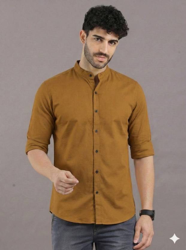 Band Collar, Solid Shirts, Mighty Mustard, Earthy Tones, Day Casuals