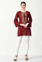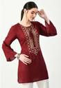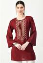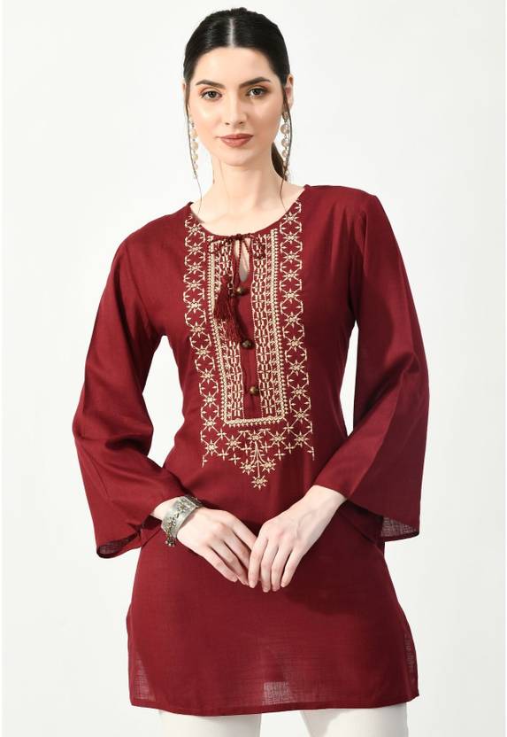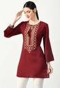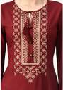 Its casual yet elegant design makes this top a versatile clothing item, effortlessly pairing with jeans, skirts, or trousers. The unique embroidery and colour combination offers a refreshing variation to regular wardrobe choices. This versatility allows it to adapt to different styles and occasions, making it a go-to piece for various outfits.