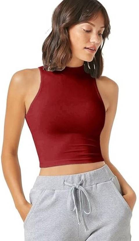 VAAMII Women's & Girls' Solid Ribbed Crop Tank Top