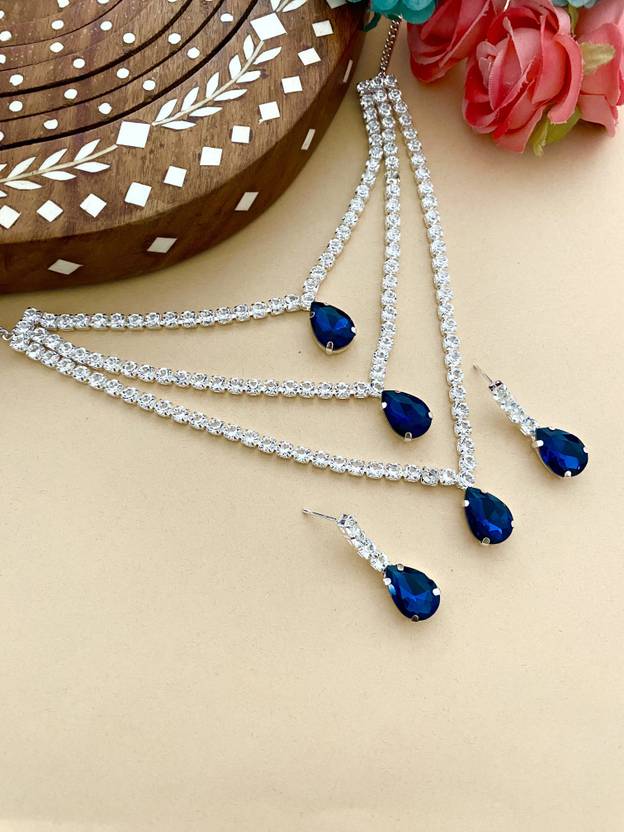 Upgrade your jewellery collection with this premium silver-plated jewellery set, designed to add a touch of sophistication to every outfit. Inspired by trending Korean jewellery, this American diamond (AD) necklace set is a must-have for fashion-forward women.