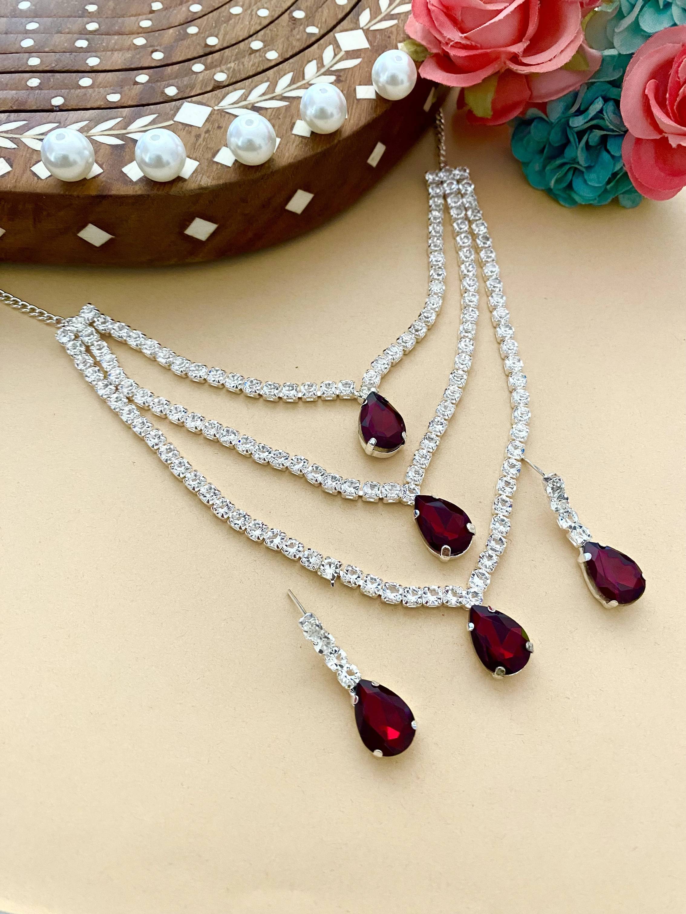 Latest Trending Silver Plated Layered Necklace with earrings