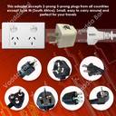 vadda bai 3 Pcs. 10A 3 Pin Travel Adapter Plug for India to Australia, China, New Zealand (Type I) Conversion Plug Small and Light Weight Design Three Pin Plug (White)