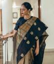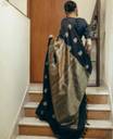 Self Design, Woven Banarasi Jacquard Saree (Black, Gold)
