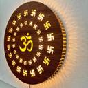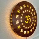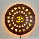 vaeps OM Swastik Wall Hanging, Decor,Led Light Table Lamp, Wall for Mandir, Decoration (18 inch X 12 inch, Brown, Golden Yellow)