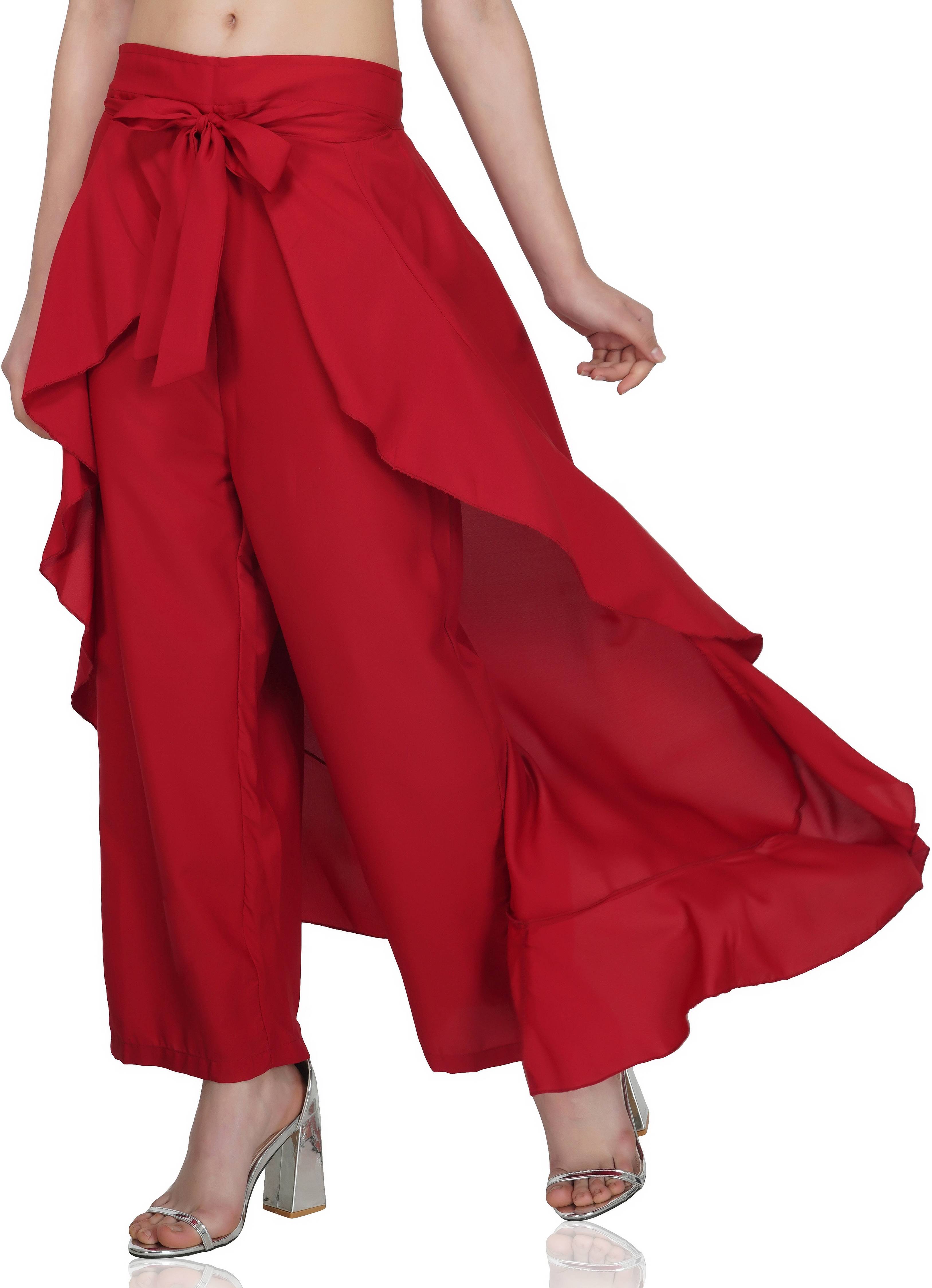 Solid Flared Ruffle Palazzos. Fashionable Ruffle palazzo pants (Trousers) for women, the size is the free size(26-36). An impressive outfit when matched with a tank top or a crop top. Upgrade your style with this trendy Ruffle Palazzo Skirt from Wears. We provide the best quality product our Fabric, Stitches, and Fitting are very good- Interlocking. This has been designed keeping in mind the latest trends in contemporary casual fashion. The skirt combines with the fashion of today and makes you stand out among others when you adorn it. This skirt can be used for parties, weddings, school, cocktails, holidays, homecoming, dates, shopping, dinner, business, etc. You can pair it with a tee, tank top, sweater, etc. A Simple, Fashion, Classic Wide-Leg Design makes women’s Ruffle palazzo pants ideal for many. Very soft, Elegant, Comfortable exquisite waist design and various wearing styles which is made of Crepe and Lightweight Material. The fancy style is greatly flaunted by the maxi-skirt overlay, cute bow-tie ribbon, High Split front, and flowing ruffle accent. A tie-waist silhouette and loose-fitted pants provide custom comfort. Enliven your wardrobe with this Ruffle Plazzo Skirt. An elastic waistband allows for a better fit. An Adjustable Waistline helps you find that just-right fit. The fancy style is greatly flaunted by the maxi-skirt overlay, cute bow-tie ribbon, High Split front, and flowing ruffle accent.