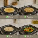Owing to its balanced shape and generous cooking area, this tawa supports a variety of preparations such as dosa, chapati, roti, uthappam, and naan. The even heat distribution may help achieve consistent cooking outcomes. Its design suits regular meal routines, offering a dependable option for preparing breakfast, lunch, or dinner dishes with ease.