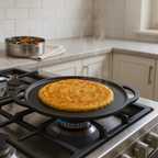 Made from heavy-duty cast iron, this tawa helps distribute heat evenly across the cooking surface, which supports uniform cooking across all areas. With continued use, the surface tends to develop natural non-stick properties, allowing food to be released easily. This also helps reduce the need for excess oil or butter during preparation. Its robust structure supports regular use with little maintenance over time.